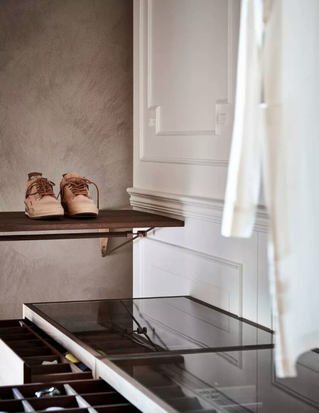 一個(gè)更具風(fēng)格的美學(xué)用于私人住宅,墻上裝飾著經(jīng)典的白色木鑲板,地板上裝飾有硬木鑲木地板,
